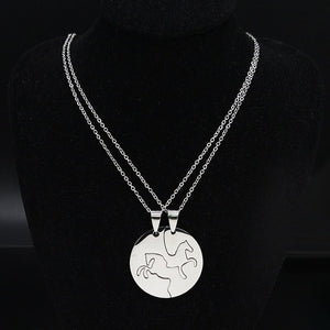 Introducing the Couple Horse Necklaces – an elegant nod to the untamed spirit of love that knows no bounds. Perfect for duos who find strength and serenity in each other's company, this couple necklace embodies love that's as wild and free as a horse in full gallop. Beyond its visual appeal, it's a testament to the ride of a lifetime, the strides taken side by side, and the promise of a journey filled with endless horizons.
