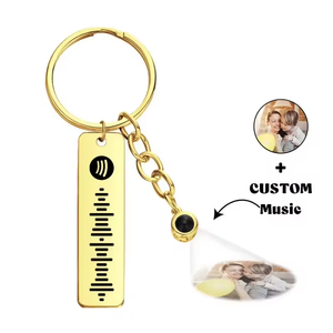 Combine the power of sound and sight with our Custom Photo Projection Keychain, a meaningful keepsake that displays your favorite photo and plays your special song. This elegant accessory includes a hidden projected photo and a scannable Spotify code, so your loved one can see your memory and hear your love anytime, anywhere.