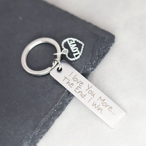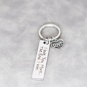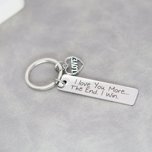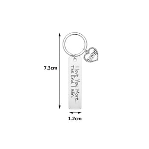 Unveiling the "I Love You More" keychain - a heartfelt token of affection that serves as a daily affirmation of your love. Its small size carries a monumental message, ensuring every day starts and ends with a smile. Let it be a tangible representation of the love that words can't always capture.