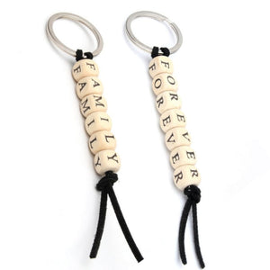 Immerse yourself in the rustic charm of our Wood Bead Keychain. Our "Family Lover Forever" Wood Bead Keychain embodies the deep bonds of love and kinship. Each bead is meticulously engraved with a letter of the words "Family", "Lover", and "Forever", encapsulating the essence of relationships that transcend time and distance.