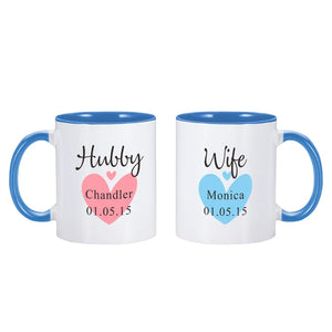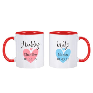 Celebrate your marital bliss with our Hubby and Wife Mugs. These beautifully designed mugs for couples are a tribute to the loving bond shared between husband and wife. Each set includes two mugs, one inscribed with "Hubby" and the other with "Wife," in elegant, modern lettering. They are the perfect companions for your morning coffee or evening tea, symbolizing your shared journey in life.