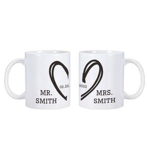 Enjoy your daily coffee ritual with a touch of elegance and romance using our Mr & Mrs Coffee Mugs. These beautifully crafted mugs are a symbol of love and unity, perfect for couples. Each set includes two mugs, one with "Mr" and the other with "Mrs" inscribed in a sophisticated and timeless font, reflecting the bond shared between husband and wife.