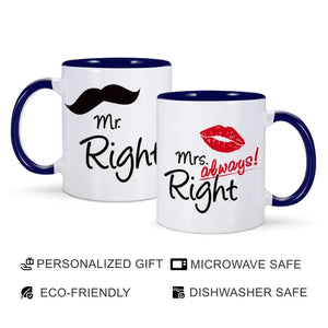 Discover the joy of shared moments with our Mr Right Mrs Always Right Mugs. A perfect blend of quality, style, and humor, these couple mugs are ideal for couples seeking to add a touch of love to their daily routine. They are not just mugs, but a statement of love and fun, making them a splendid addition to any kitchen or office space. Shop now for a memorable gift!