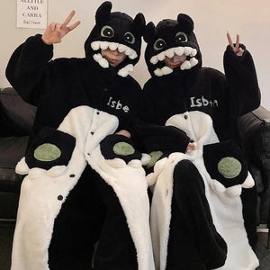 Unleash your inner fantasy with these Black Dragon Couple Onesies, perfect for partners who love matching loungewear with a bold, playful twist. Featuring dragon-inspired details like wings, tails, and hoods with dragon faces, these onesies bring a magical edge to your downtime.