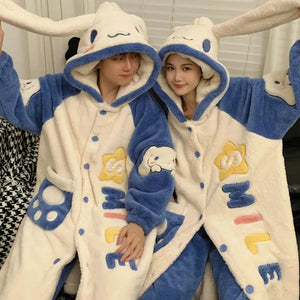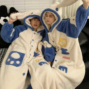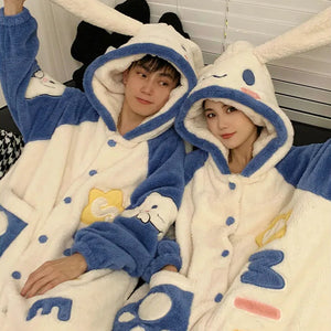 Add a touch of charm to your loungewear with these Cute Matching Couple Onesies (White Rabbit), designed for partners who love playful, cozy outfits. Featuring classic rabbit-inspired details, long white floppy ears, a soft tail, and plush fleece, these onesies are as adorable as they are comfortable.