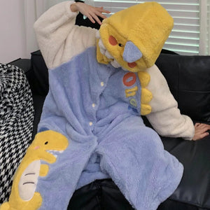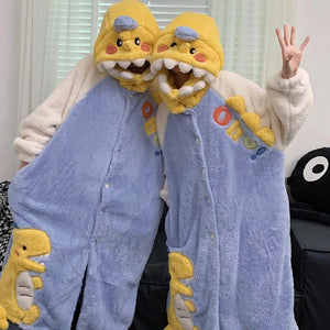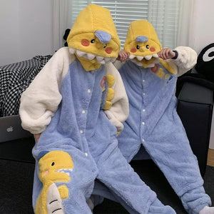 Bring playful energy to your loungewear with these Yellow Dino Matching Onesies for Couples, designed for partners who love to match in cozy, fun style. Featuring dinosaur-inspired details like a spiky tail, claw accents, and a hood with dino eyes, these onesies combine warmth with whimsical charm.