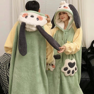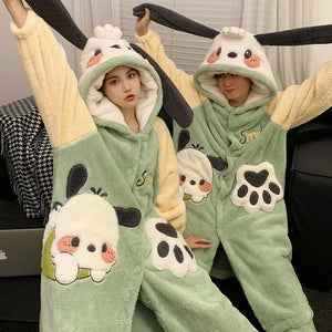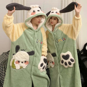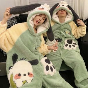 Stay cozy and playful with these Green Cute Couple Onesies featuring an adorable little dog design, perfect for partners who love to match in comfort and fun. Designed with charming dog-inspired details, pointed ears on the hood, embroidered features, a soft tail, and a vibrant green fleece, these onesies are the ideal mix of whimsical style and cozy loungewear.