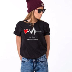 Show the world the depth of your love with our Cute Couple shirts My heart only beat for him. These couple shirts feature a sweet, romantic message that perfectly encapsulates the exclusive love you share. Perfect for couples who aren't afraid to wear their hearts on their sleeves, these matching shirts express your affection in the most charming way.