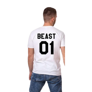 Celebrate your unique love story with these amusing His Beauty, Her Beast Couple T-shirts. Designed to showcase the lighthearted and humorous side of your relationship, these shirts are perfect for couples who love to laugh together.