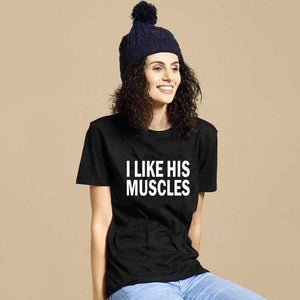 Add a dash of playful flirtation to your wardrobe with our I like his muscles shirt for couples. These funny couple shirts boast a light-hearted design that adds a fun spin to your everyday outfits. Ideal for couples who enjoy a good laugh and a little bit of flirty fun, these matching shirts brighten your day in the most delightful way.
