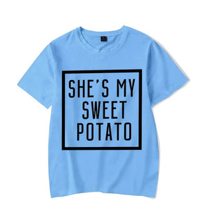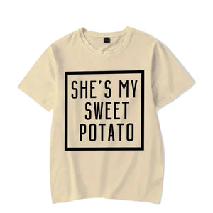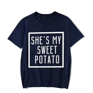 Embrace the fun in your relationship with our She's My Sweet Potato I Yam Shirts. These shirts for couples are a humorous and sweet way to show off your connection. Ideal for couples who love a good pun and enjoy expressing their affection with a touch of humor. Perfect for date nights, casual outings, or as a charming gift, these funny matching shirts are sure to bring smiles and a sense of joy to any occasion.