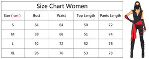 Women 2 Suit: Top + Pants + Mask + Red Waist Sash + Gloves + Red Lace Bands