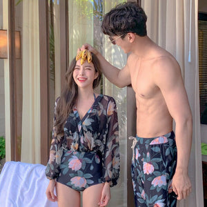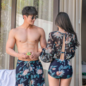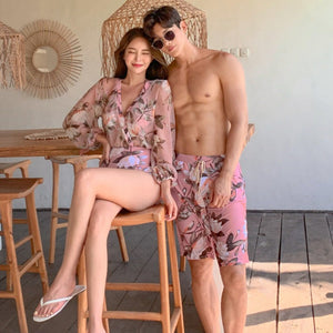Embrace the beauty of nature with our couples swim sets featuring enchanting flower patterns in both blue and pink. Perfect for romantic beach vacations or lounging by the pool, these Couple swim sets offer a harmonious blend of style, comfort, and sophistication for you and your partner.
