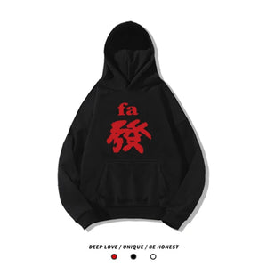 Embrace style and good fortune with our FaCai Matching Hoodies, a perfect blend of fashion and auspicious symbolism. Ideal for couples, these matching hoodies feature the 'Fá Cái' phrase, symbolizing prosperity and wealth, and are inspired by elegant Chinese aesthetics. Whether for cultural celebrations or casual outings, these high-quality and comfortable hoodies offer a unique way to express unity and cultural appreciation. Wear good fortune with our stylish and meaningful Fá Cái Hoodies.