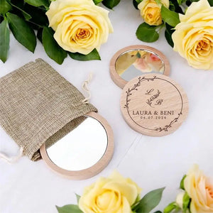 Custom engraving allows you to add names, initials, or a special date, transforming this simple wooden mirror into a cherished keepsake that reflects your love story. Its small size makes it ideal for everyday use, travel, or as a beautiful reminder of a special moment.