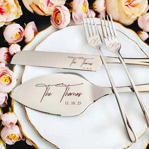 Celebrate life’s sweetest moments with our Wedding Cake Cutting Set, a timeless keepsake designed for couples to treasure long after the celebration. Crafted from high-quality stainless steel, this elegant set includes a cake knife (27 cm), cake server (22.7 cm), and matching fork (17.4 cm), everything you need for the perfect cake-cutting ceremony.