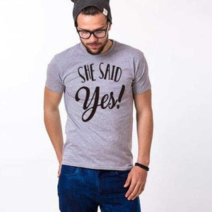 Celebrate a joyful confirmation of love with our Matching couple shirts She said yes. The vibrant "She Said Yes" prints are a joyful affirmation of your bond, making these shirts an essential addition to any engaged couple's wardrobe. They capture your shared journey to commitment, offering a unique and joyful way to celebrate your love.