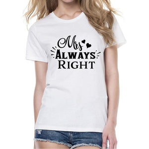 Show off your love and your shared sense of humor with our Mr right and mrs always right t shirts. These playful prints speak volumes about your special relationship dynamics, making these matching couple shirts a fun and meaningful addition to your wardrobe.