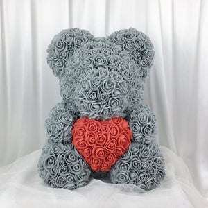 Embrace the elegance of modern love with our Gray Rose Teddy Bear, a unique gift crafted from stylish gray roses in the shape of a teddy bear. Perfect for conveying affection and admiration in a refined and contemporary manner. A lasting keepsake that offers a chic and unforgettable gesture of love. Add a touch of sophistication and uniqueness to your special occasions with this captivating Rose Teddy Bear.