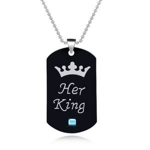 The choice of black as the base color adds a touch of mystery, sophistication, and undying charm. Representing strength, authority, and elegance, black creates a captivating contrast, making the "His Queen" and "Her King" engravings stand out, symbolizing the unique roles each partner plays in the relationship.