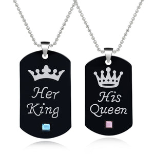 Embrace the majesty of a relationship that stands tall against the test of time with the Black his queen her king necklace. This set is not merely jewelry, but a testament to the enduring love and mutual respect that a couple shares. Explore the depths of this elegant piece.