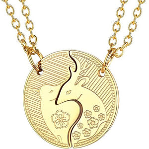 Celebrate the timeless bond of love with our Matching Buck and Doe Necklace, inspired by the wilderness and its beautiful connections. Embodying the essence of two souls finding each other in life's vast forest, this couple necklace duo is a testament to love's enduring strength. The blend of artistry and high-quality materials ensures that these necklaces for couples not only shine brilliantly but also resonate deeply with nature lovers.