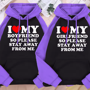 Add humor to your relationship while making a bold statement with our Matching BF and GF Hoodies featuring the hilarious phrase: "I love my BF / GF, so please stay away from me."