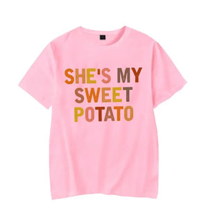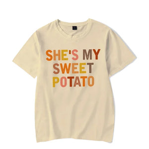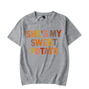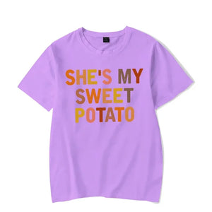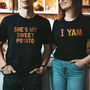 Add a sprinkle of humor to your relationship with our She's My Sweet Potato Shirt. This matching shirt is perfect for those who appreciate a playful and light-hearted approach to expressing love. Ideal for casual dates, cozy evenings at home, or as a fun gift, it's a unique and adorable way to show your affection. It's not just a garment; it's a conversation starter and a testament to the joy in your relationship.