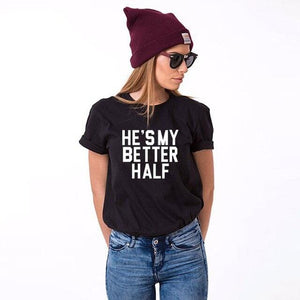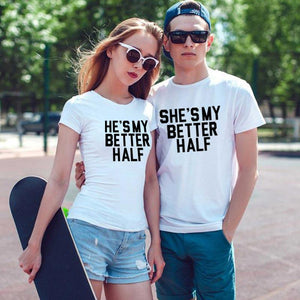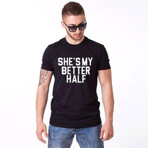Our Cute couple shirts She's my better half are designed to celebrate the beautiful bond between you and your partner. These couple shirts symbolize the perfect match you have found in each other, where one completes the other. Wear them together and let the world know that your partner is truly your better half.