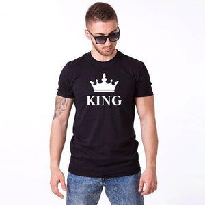 Make a bold declaration of your love with our Black King and queen couple t shirts. The striking "King" and "Queen" prints on a black background add an edgy charm to your shared connection, making these king and queen couple shirts a standout choice for any couple's attire.