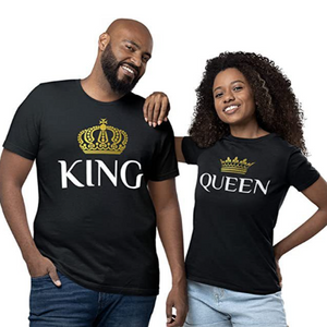 Do you like these t-shirts? Then you'll love our King and queen crown couple shirts as well as our entire collection of King and Queen Shirts. For more inspirations, find our collection of Couple Outfits.