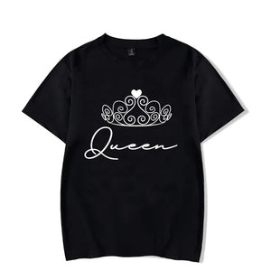 Step out as a regal duo with our King and Queen with Crowns T-shirts. These matching couples shirts are the epitome of royal elegance, featuring sophisticated crown designs that symbolize the majestic nature of your relationship. Perfect for couples who wish to express their unity and dignity in a stylish and meaningful way.