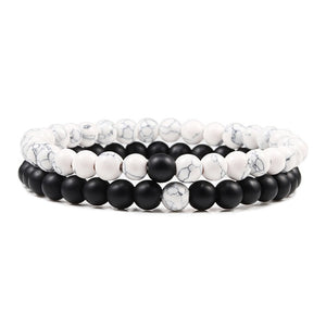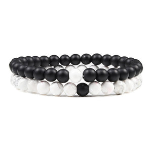 The combination of white and black reminds the Ying and Yang, apply this principle to your couple. Black will be the symbol of power, sexuality and mystery. On these Couple Bracelets The white on the contrary will represent the purity and innocence of your couple.
