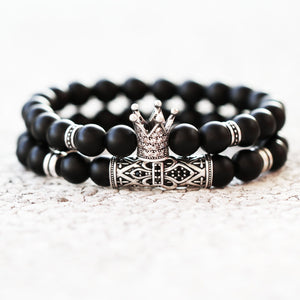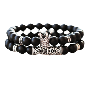 These couple's crown bracelets are an exceptional blend of elegance and versatility. With their regal design, they can be paired with any attire, casual or formal.
