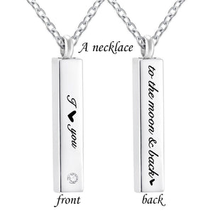 Introducing our "I Love You to the Moon and Back" Necklace – an ode to love that knows no bounds, traveling through galaxies of feelings and illuminating the darkest nights with its warmth. This path embodies the journey of love – always aiming higher, reaching further, yet forever centered around its core emotion.