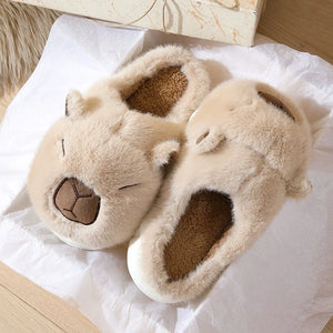 Designed with sweet capybara features, rounded snout, soft fur texture, and friendly embroidered details, these slippers add playful charm to your home routine. Lightweight and easy to slip on, they’re perfect for relaxed mornings, cozy nights, or lazy weekends spent together.