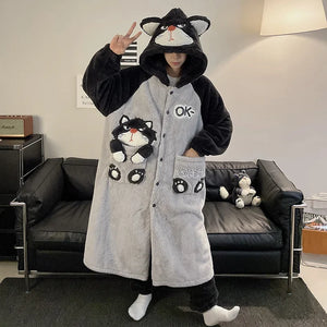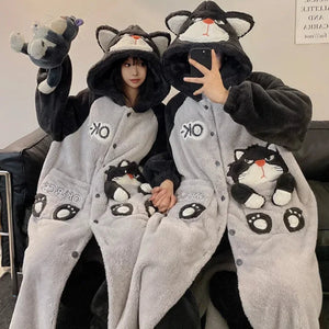 Get cozy and playful with these Black Cat Couple Onesies, designed for partners who love to match in style. Featuring charming cat-inspired details, pointed ears on the hood, a cute tail, and a sleek black design, these onesies are perfect for lounging, sleeping, or dressing up for themed parties.