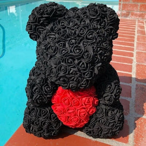 Embrace the allure of the unique with our Black Rose Teddy Bear, a sophisticated couple gift crafted from elegant black roses in the shape of a teddy bear. Perfect for conveying deep admiration and a sense of mystery in a distinctive manner. A lasting keepsake that offers a bold and unforgettable gesture of affection. Add a touch of sophistication and uniqueness to your gift-giving with this captivating Rose Teddy Bear.