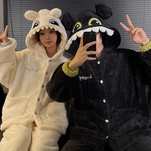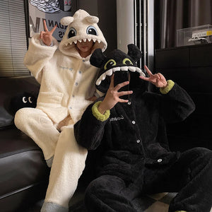 Unleash your playful side with these cozy Dragon Couple Onesies, designed for partners who love fun, comfort, and matching outfits. With their whimsical dragon design, complete with a tail, hood, and scales, these matching onesies are perfect for lounging, themed parties, cosplay nights, or even as unique holiday pajamas.