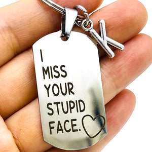 Introducing the "I Miss Your Stupid Face" Keychain – a cheeky yet endearing way to tell someone just how much you miss them. It's a lighthearted nod to the bond you share, even when you're apart. A blend of humor and heartfelt sentiment, it’s the perfect gift for those you truly miss.